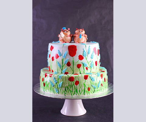 Так на вашем банкетном столе может появится элегантный торт с вычурными вензелями или классика свадебных десертов – кондитерское изделие, украшенное фигурками жениха и невесты, сладкое блюдо с кремом, шоколадом, карамелью и другими начинками, декорированное сахарной флористикой, свежими фруктами или ягодами, обтянутое мастикой или дополненное различными топингами, облагороженное художественной росписью, портретами или пейзажами, исполненное в ярких насыщенных или приглушенных пастельных тонах. Для тех, чье свадебное мероприятие запланировано в виде тематической вечеринки, мы поможем заказать торт, оформленный в соответствующей стилистике.
